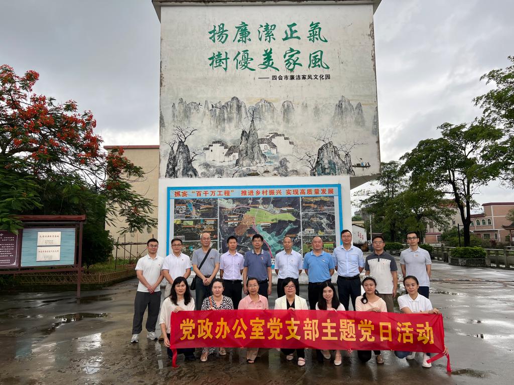 531日,党政办公室党支部组织党员干部前往四会市廉洁家风文化园反腐倡廉教育基地参观学习,开展弘扬廉洁文化主题党日活动。通过参观历史文化陈设馆、重温入党誓词等环节,进一步强化党纪意识,增强党性观念,传承廉洁家风,筑牢拒腐防变思想防线。
